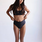 Introducing the Nahele high waisted bikini bottom - the epitome of elegance and comfort. This bottom offers a seamless waistband and moderate coverage that flatters your waist and legs. Made from luxurious Italian regenerated ECONYL fabric (Carvico - VITA), the Nahele is not only chic but also sustainable. It's resistant to chlorine, pilling, and UV rays, and offers great shape retention and two-way stretch. Elevate your swimwear collection with this high fashion piece that embodies sophistication and practicality.