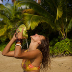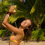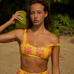 Introducing the Nahele high waisted bikini bottom in limited edition print Ohana - the epitome of elegance and comfort. This bottom offers a seamless waistband and moderate coverage that flatters your waist and legs.